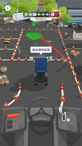 4、需將卡車駕駛至綠色區域,完成關卡目標,不斷挑戰不同關卡,提升駕駛能力,獲取通關獎勵。