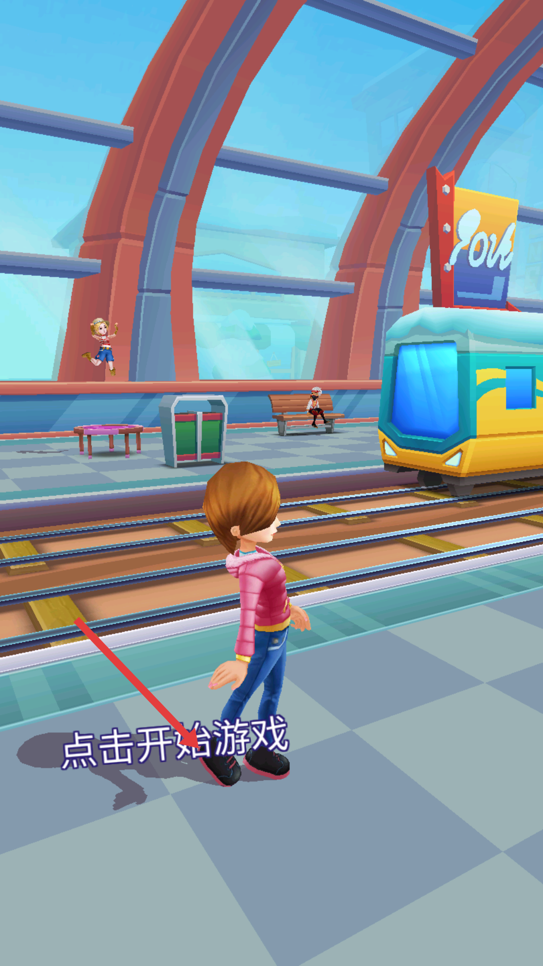 1、點擊點擊開始游戲進入游戲,在地鐵站場景中開始跑酷挑戰,躲避地鐵等障礙物。