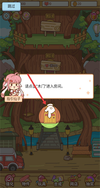 1、點擊木門進入房間,開啟房間內的經營與布置之旅,按照指引逐步探索房間功能。
