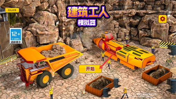 1、點擊開始進入建筑工人模擬器游戲,開啟建筑施工模擬體驗熟悉各類工程車輛和施工場景。