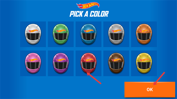 1、選擇喜歡的頭盔顏色點擊OK進入游戲,開啟賽車挑戰之旅定制個性化的賽車形象。