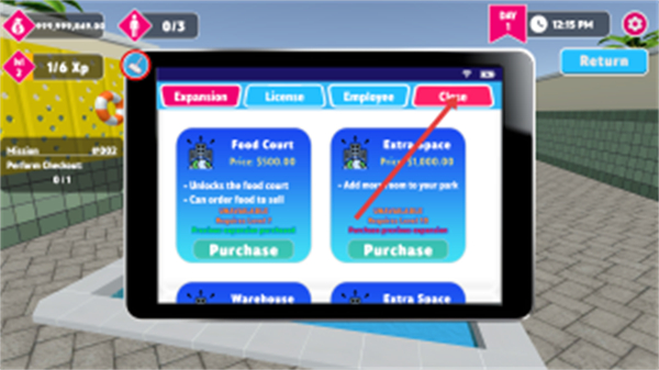 2、在平板的Expansion選項中選擇WavePool進行購買,解鎖波浪池設施,豐富樂園游玩項目,吸引更多游客。