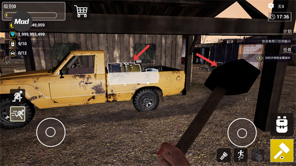 3、使用錘子銷毀車輛等金屬物品收集掉落的資源,合理管理背包確保資源的充足推進任務進程。