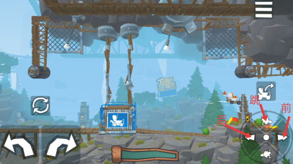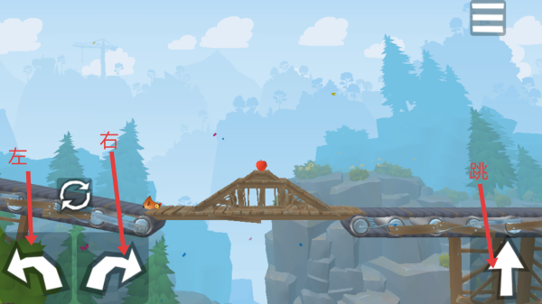 2、游戲中通過左、右按鈕控制方向,跳按鈕跨越障礙,在木橋等場景中靈活操作,收集沿途道具。