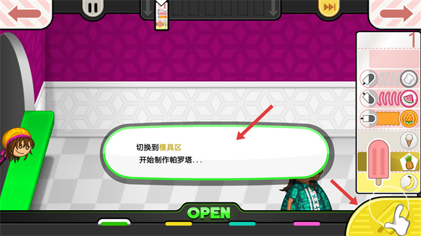 2、切換到模具區開始制作帕羅塔按照提示操作,進入制作的關鍵環節推進訂單的完成進度。