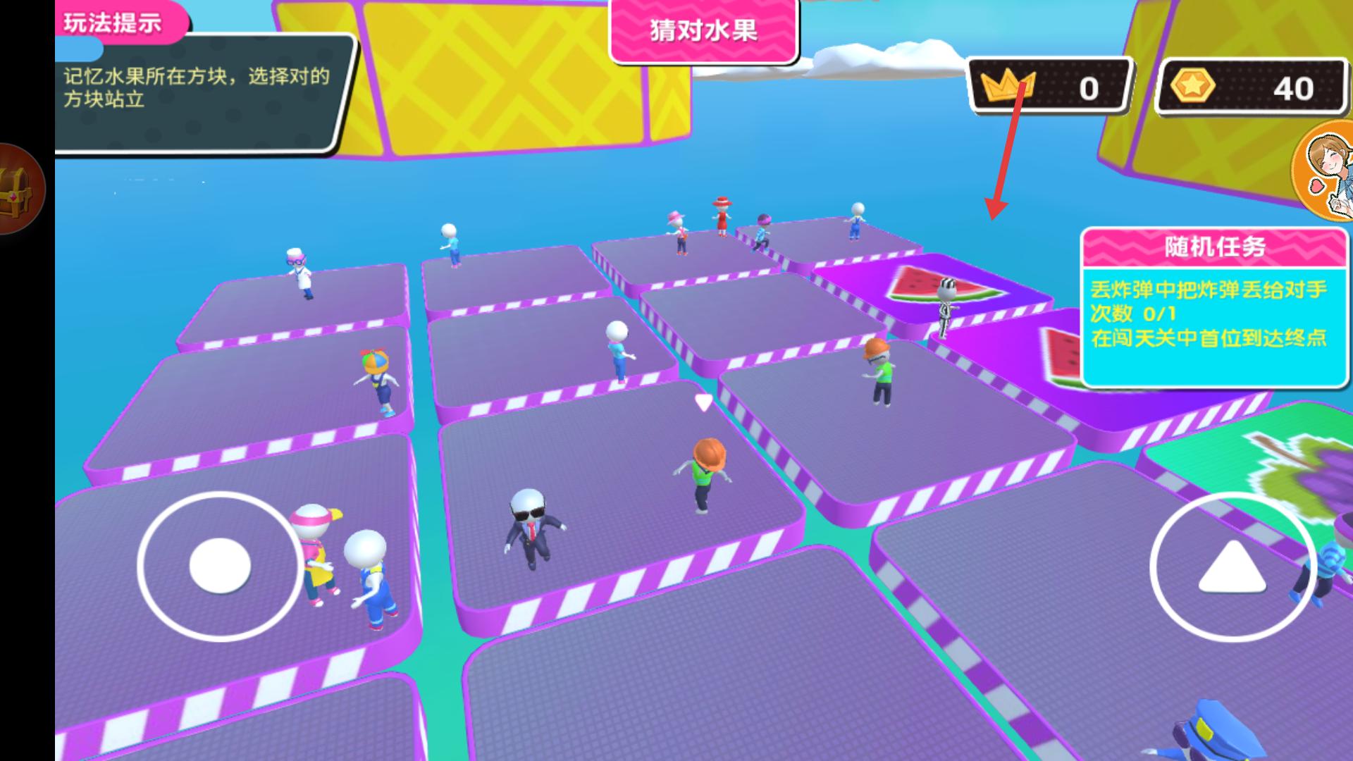 4、應對趣味挑戰,如猜對水果關卡,需記憶水果所在方塊,選擇正確方塊站立,順利通過以繼續游戲進程。