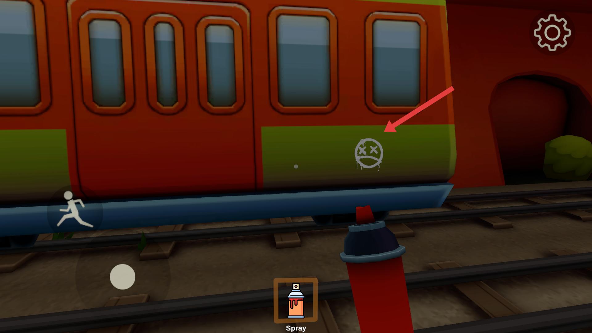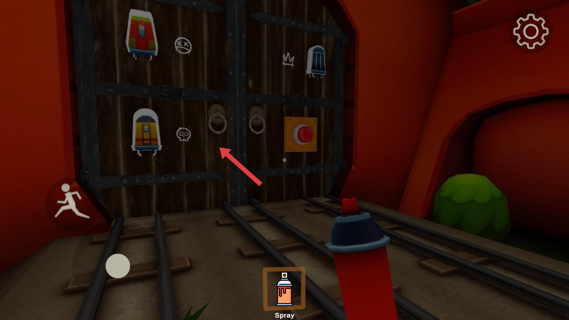 1、在帶有火車圖案和特殊標識的門前,根據箭頭指引靠近,觀察并記憶不同標識,為后續噴漆任務做準備。