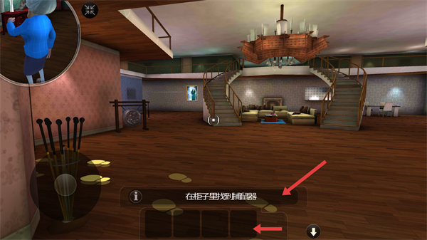2、移動操縱桿控制角色移動到門前進屋后在碗櫥里尋找捕鼠器,按照指引推進游戲收集關鍵物品。