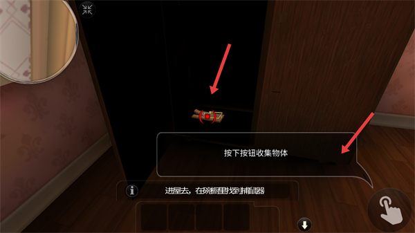 4、找到捕鼠器后按下按鈕收集物體完成物品收集,為將其放在桌子上的任務步驟做準備推進游戲進程。