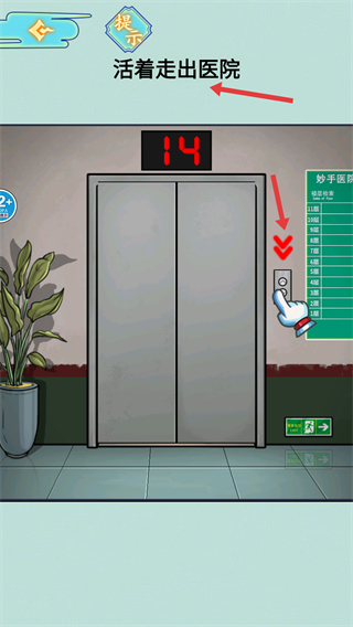 3、明確活著走出醫院的目標操作電梯按鈕,探索醫院的不同樓層尋找離開的路徑。