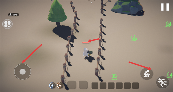 3、左搖桿控制移動右按鍵蹲伏疾跑沿路徑如木欄通道探索,避障礙找資源利用場景互動推進關卡。