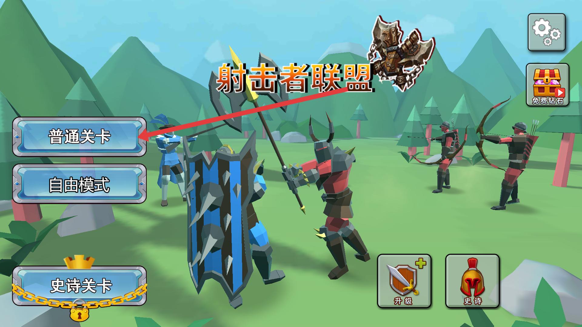 1、進入游戲主頁面,選擇普通關卡,進入關卡準備界面,開始游戲進程。