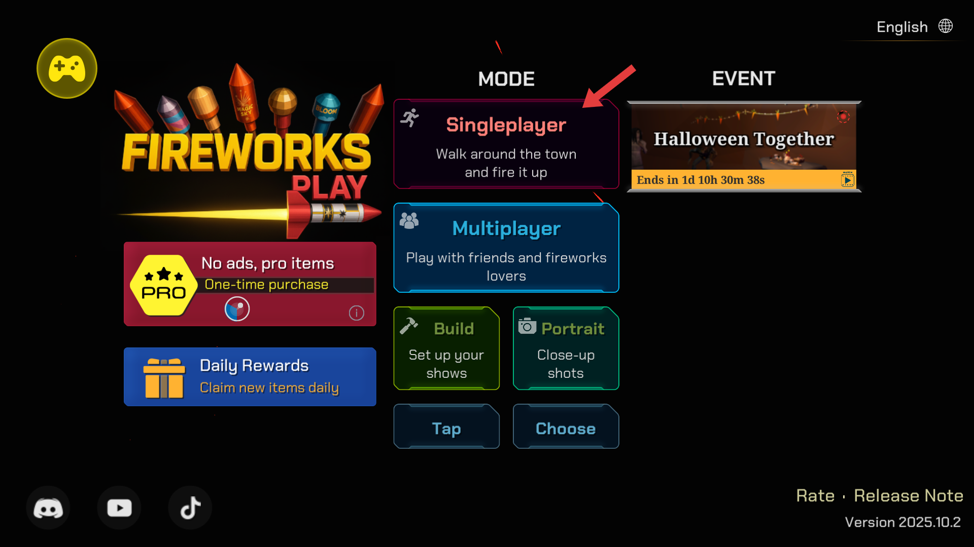 1、進入游戲先看到帶有煙花元素的界面,可選擇Singleplayer等模式,開啟煙花游玩之旅。