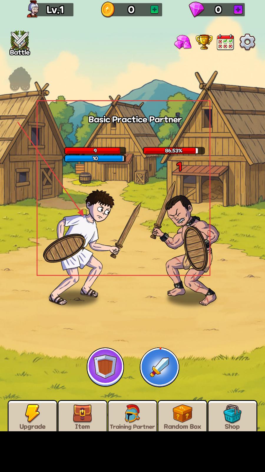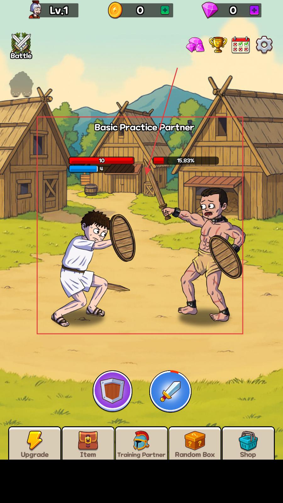 1、玩家在與基礎練習伙伴戰斗,通過攻擊和防御操作消耗對方生命值,提升自身戰斗經驗,推進游戲進程。