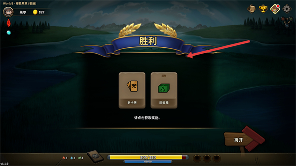 4、戰斗勝利后獲取新卡牌和回收箱獎勵,積累卡牌資源提升卡組實力為后續的冒險和對戰做準備。