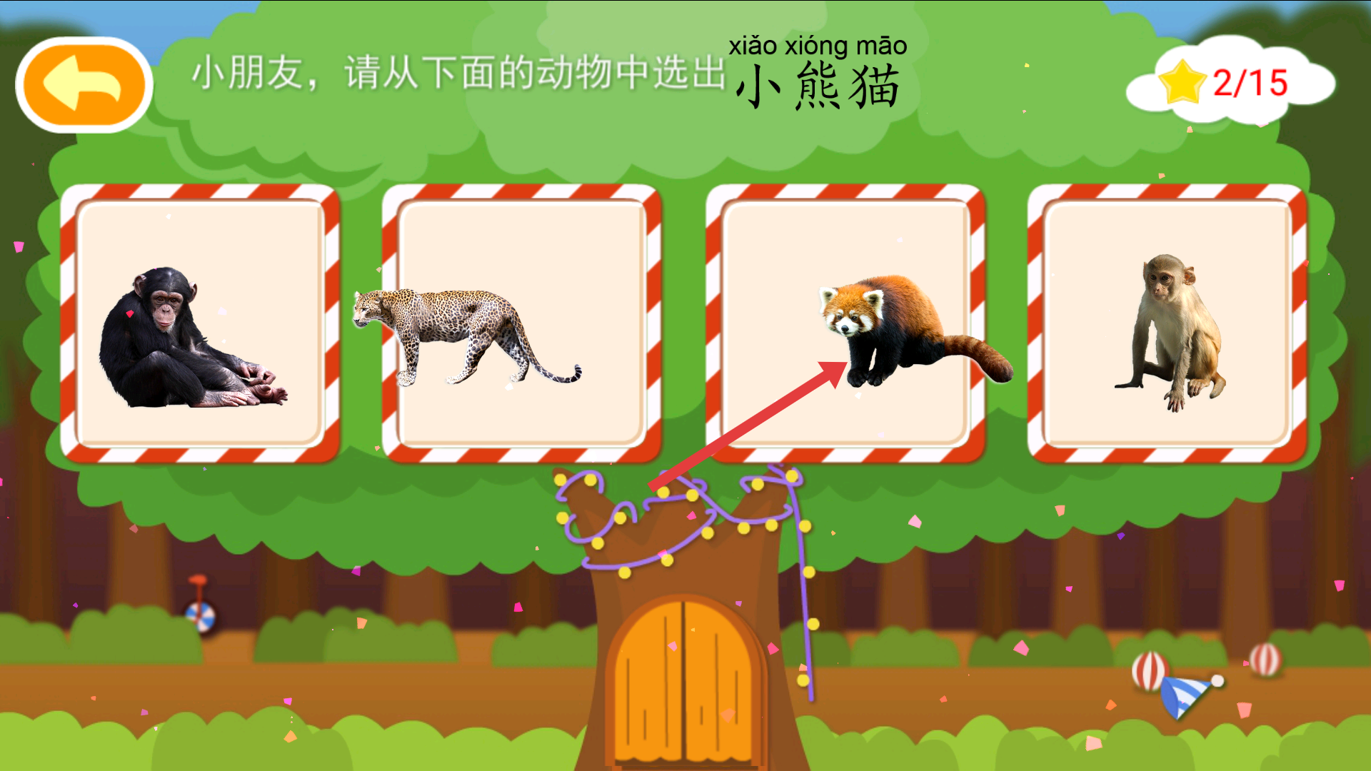 3、還會出現其他動物識別任務,如小熊貓拼音,需準確從動物圖片中選出小熊貓,提升動物辨別能力。