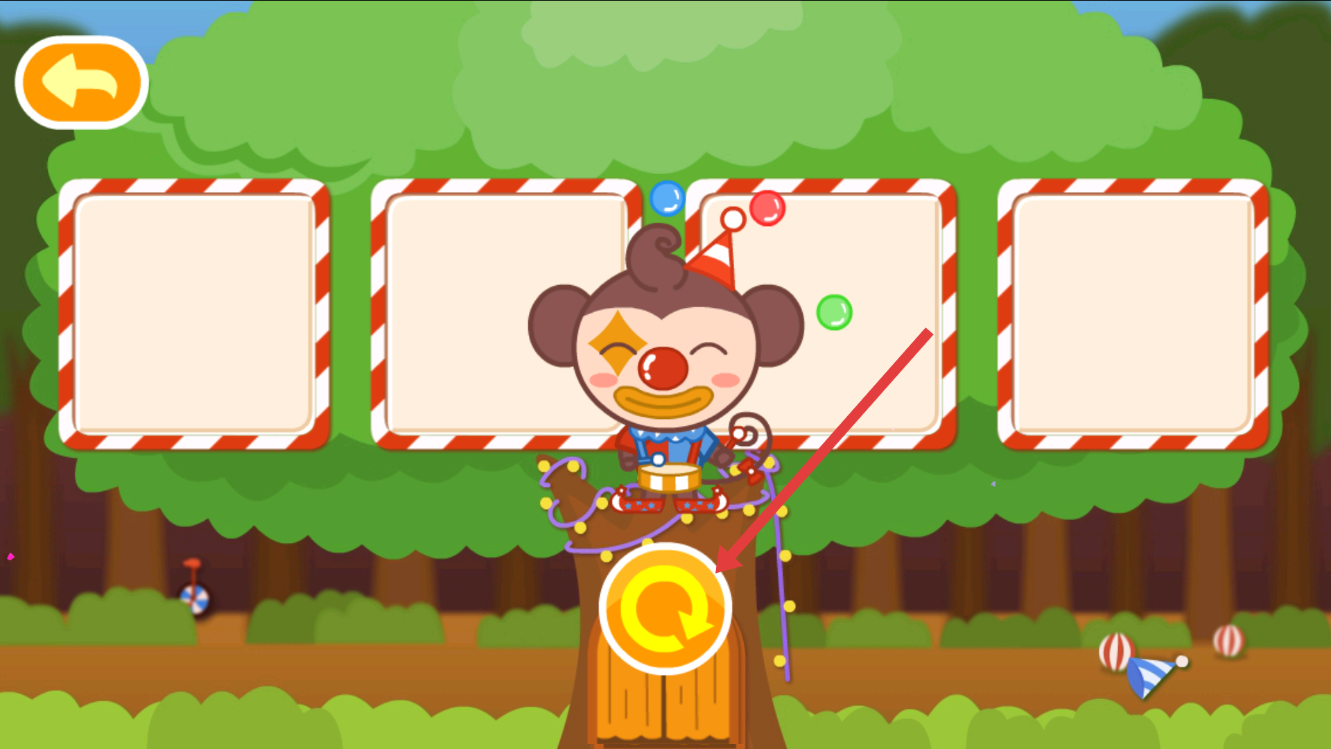4、完成動物識別后,會出現小丑猴子形象,點擊下方黃刷新按鈕,可繼續挑戰新的動物識別任務,積累更多動物認知。