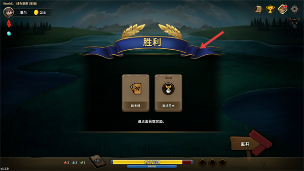 4、戰斗勝利后獲取新卡牌和復活藥水獎勵積累卡牌資源和消耗品,提升卡組實力為后續的冒險和對戰做準備。