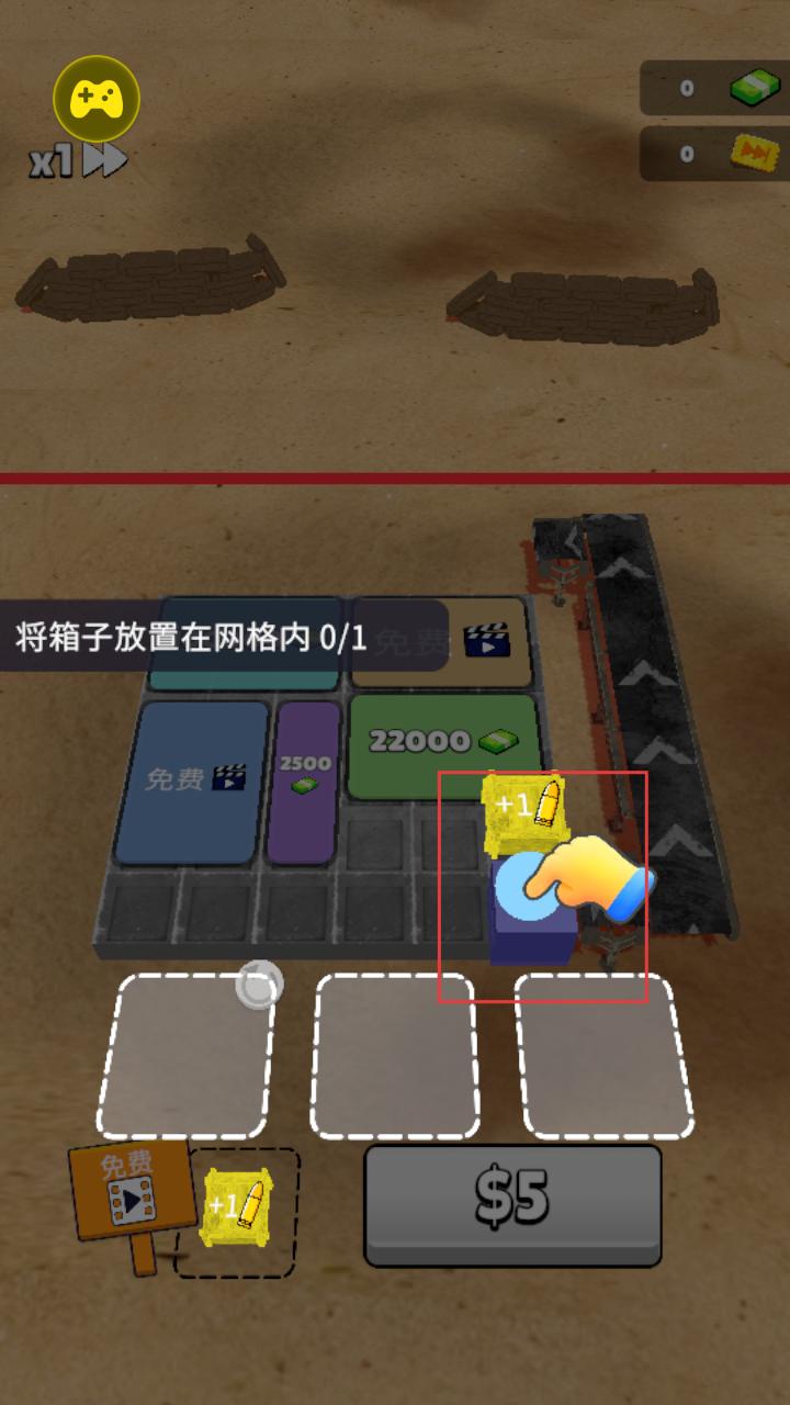 1、將箱子放置在網格內,開啟塔炮防御的準備工作,為后續抵御敵人進攻搭建基礎。