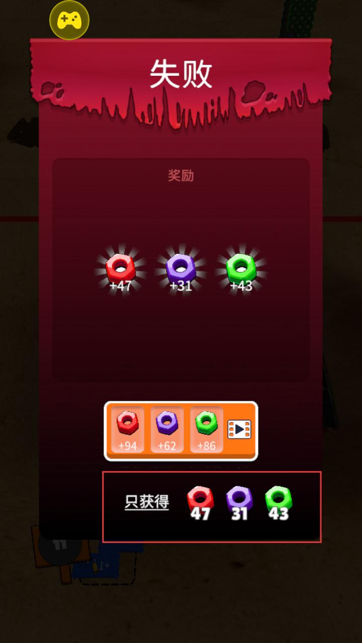 4、若防御失敗,會獲得紅、紫、綠三種獎勵道具,可用于后續強化塔炮,積累資源后再次挑戰,提升防御實力。
