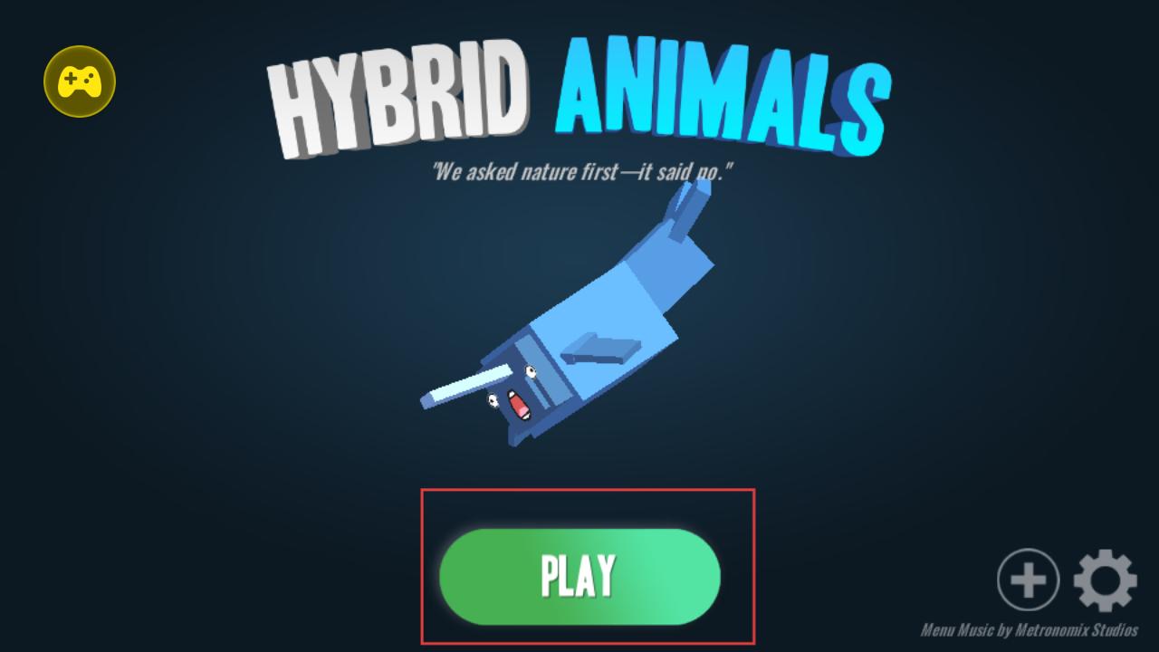1、進入游戲看到HYBRID ANIMALS標題界面,點擊綠色PLAY按鈕,開啟動物合成的創意之旅。