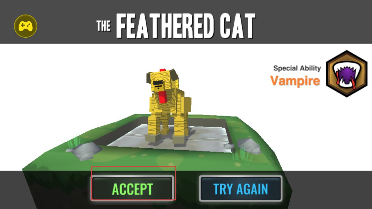 3、合成出如The Feathered Cat這樣的雜交動物后,點擊ACCEPT確認,獲取其特殊能力,準備探索世界。