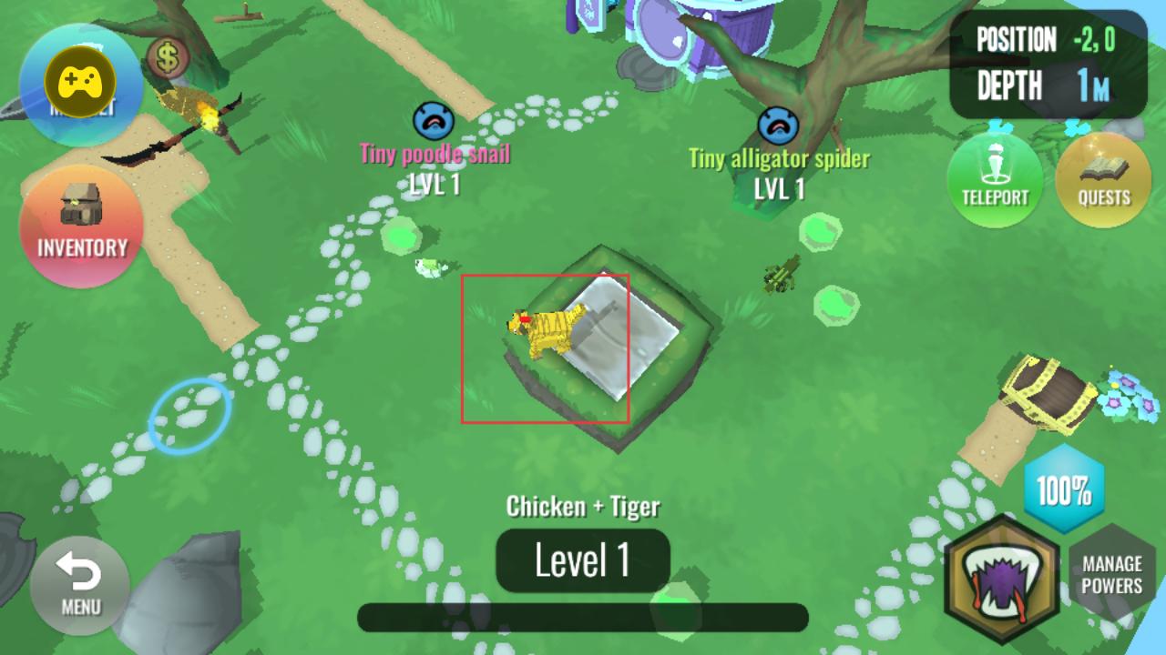 4、操控合成的動物,如Chicken和Tiger,在有其他雜交動物的地圖里移動,開啟生存與成長的探索之旅。