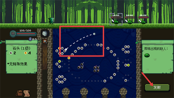 1、游戲時先瞄準彈珠軌跡,調整好角度后點擊發射按鈕,發射彈珠擊打敵人和金幣,消滅敵人獲取獎勵推進游戲進程。