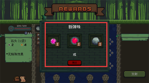 4、游戲結束后會彈出新彈珠獎勵界面,可選擇其中一種新彈珠,也可點擊跳過,獲得新彈珠后可在后續游戲中使用。