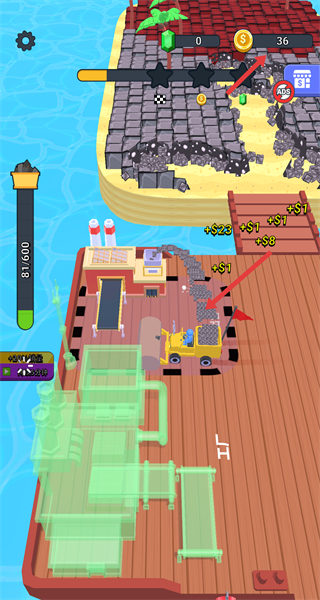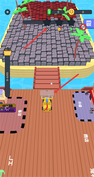 4、最后處理磚塊后獲取收益,可用于車輛升級等操作,之后再次駕駛車輛前往新的磚塊區域繼續挖掘收集處理的流程。