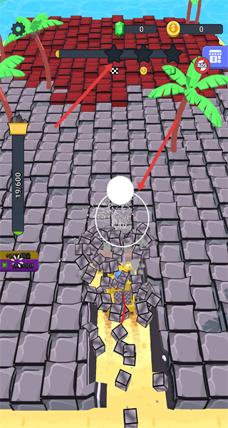 2、然后駕駛車輛在磚塊區域行駛,不斷破碎磚塊,同時收集破碎磚塊過程中出現的金幣等獎勵。