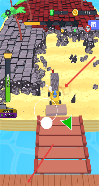 1、首先操控車輛前往帶有磚塊的區域,準備開始挖掘作業,通過操作車輛來破碎磚塊。