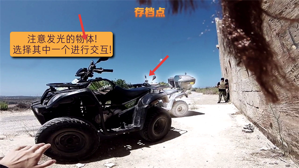 1、注意發光物體選擇其中一個進行交互找到存檔點,開啟游戲冒險熟悉游戲的交互和存檔機制。