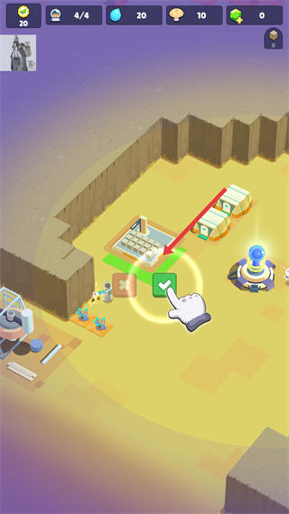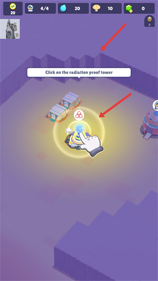 1、點擊輻射防護塔完成交互開啟基地建設的第一步,熟悉游戲的交互操作為后續建設做準備。