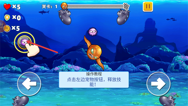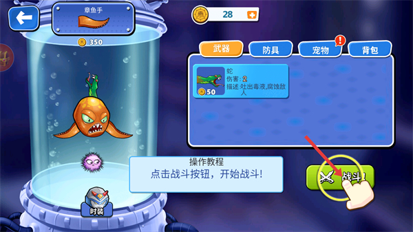 1、點擊戰斗按鈕,進入海底戰斗場景,開啟與章魚怪等海洋生物的戰斗之旅,可通過戰斗獲取金幣和資源。
