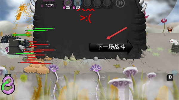4、戰斗勝利后點擊下一場戰斗繼續冒險總結戰斗經驗,優化蟲子陣容和技能使用爭取在后續戰斗中取得更好成績。