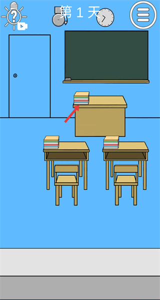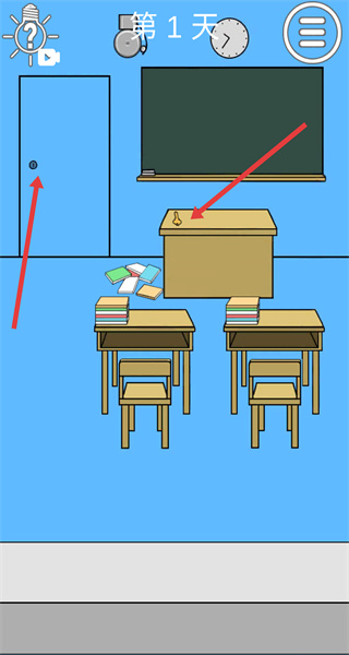 1、點擊開始按鈕,進入游戲的教室場景,里面分布著講桌課桌以及出口的門。