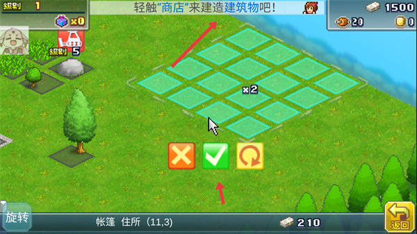 1、輕觸商店建造建筑物選擇合適的建造區域點擊確認完成建造操作,開啟基地建設為后續發展奠定基礎。
