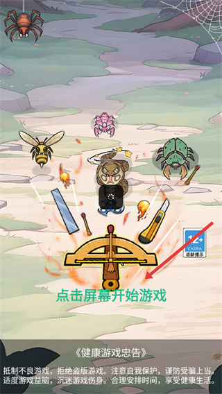 1、點擊屏幕開始游戲進入冒險場景,熟悉游戲開局流程開啟對抗昆蟲怪物的戰斗之旅。