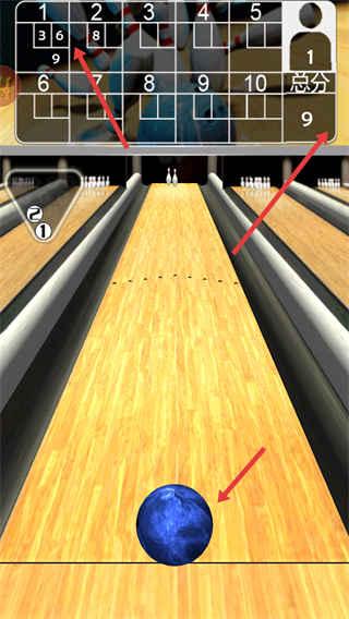 4、關注分數面板根據剩余球瓶調整擊球策略,爭取每局都獲得高分積累總分提升游戲排名。