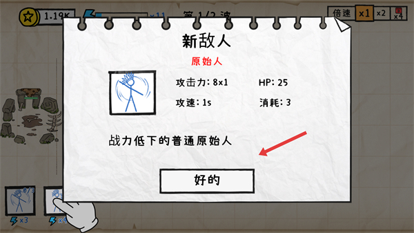 3、了解新敵人原始人的屬性點擊好的熟悉敵人戰力,制定針對性戰斗策略提升戰斗勝率。