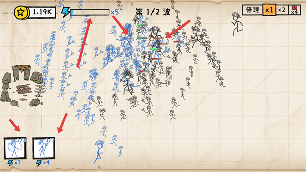 4、在戰斗中關注波數和資源合理調度不同兵種,利用兵種優勢抵御敵人進攻推進戰斗進程爭取勝利。