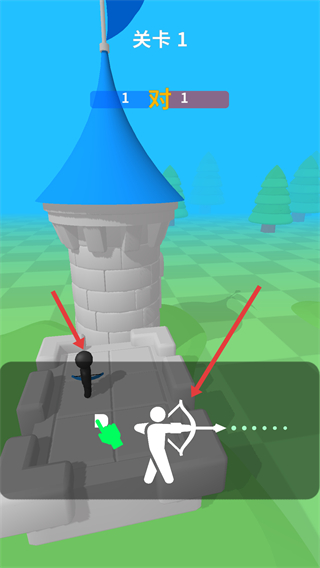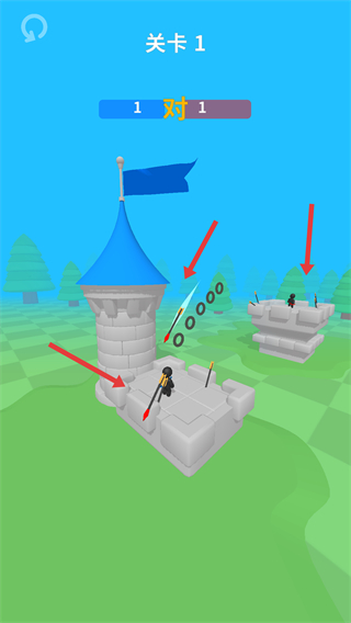 1、在關卡1中操控弓箭手角色熟悉弓箭射擊操作,為戰斗做好準備開啟城堡攻防的戰斗之旅。
