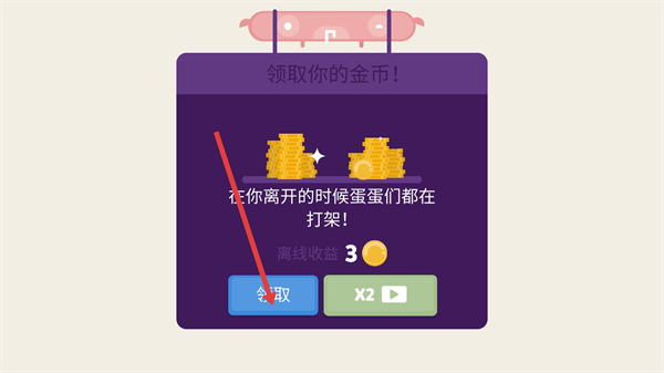 4、點擊領取按鈕,獲取離線收益的3金幣,購買游戲道具,積累游戲資源。