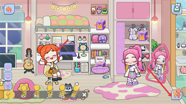 2、在場景中與角色互動探索房間內的物品和功能,熟悉游戲的互動操作提升對游戲世界的探索認知。