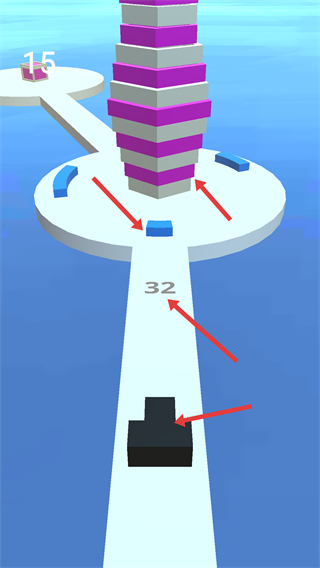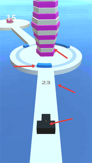2、觀察球球和塔層的顏色控制球球掉落避開障礙,熟悉掉落操作提升球球掉落的準確性推進游戲進程。