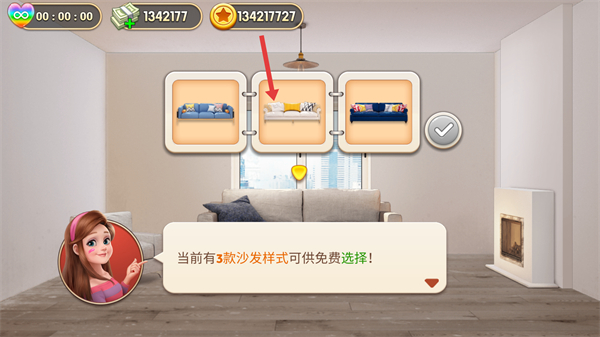 3、在房屋裝修界面,點擊沙發圖標,進入沙發更換流程,可選擇不同樣式的沙發提升房屋美觀度。