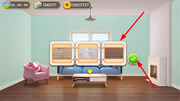 4、繼續選擇新的裝飾樣式,比如地板等元素,確認后應用到房間,持續用消除獲得的資源裝扮房間,讓環境更舒適。