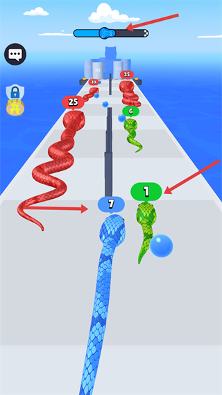 3、對抗機制遵循體量壓制規則,遭遇較短對手可實施攔截吞噬但需警惕誘敵戰術。