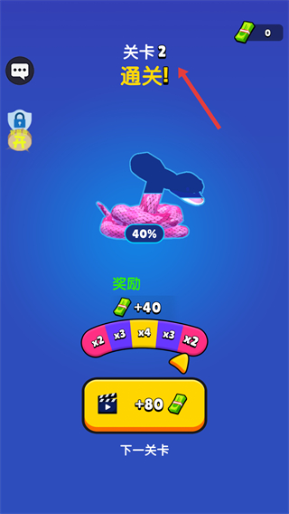 3、成功通關關卡2后會獲得金幣獎勵此時點擊下一關卡按鈕,即可進入關卡3繼續挑戰在新關卡中繼續收集資源。